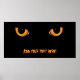Black cat and orange eyes black and orange Halloween party poster. Size shown is 12"x24".