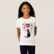 A loving black cat looks up at colorful hearts on this sweet shirt.