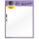 This dry erase board is for those who have a relentless passion for all they do. The design features a black cat holding a yellow note on a two-toned purple shaded background. The cartoon illustrated graphic style of this writing space gives this dry erase board a modern appearance that is perfect for the classroom or home studies. Add your own name and message to the yellow note the black kitty is holding to make it your own. Be Fierce!