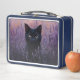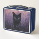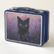 Black Cat in a Lavender Field Illustration Metal Lunch Box