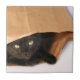 Black cat stares out from any cat's favorite toy, the brown paper bag photo ceramic tile
