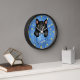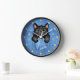 This fun novelty clock includes a faux (printed) denim / blue jean look and includes a cartoon black kitty cat that appears as if it's sitting inside a pocket! The design also includes "patches" (printed) that resemble the silhouettes of paw prints. Time is kept with printed "buttons." Use the easy template to add your name or your cat's name to the design (or simply delete the sample name "Tabitha" to order without a name). These cute clocks make the perfect gift for any cat owner! They would also be fun for an animal groomer or vet.