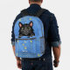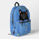 This fun novelty backpack includes a faux (printed) denim / blue jean look with a cartoon black kitty cat that appears as if it's sitting inside the front pocket! The design also includes silhouettes of paw prints and a cat / bird silhouette on one side. Use the easy template to add your name or your cat's name to the design (or simply delete the sample name "Tabitha" to order without a name). These cute backpacks make the perfect gift for any cat owner! They would also be fun for an animal groomer or vet. Find more cat colors and also find this design on other products in the store here: https://www.zazzle.com/store/laborandleisure