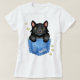 Black Cat in Faux Denim Pocket with Custom Name T-Shirt
