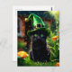 Black Cat in Green St. Patrick's Day Witch Hat Postcard
