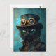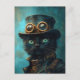 A beautiful illustration featuring a black cat dressed in a steampunk-inspired outfit including a top hat and goggles, exuding charm and creativity.