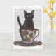 Black Cat in Teacup by FabFunky. Features a cat sitting in a beautiful floral teacup. | 191389D