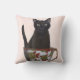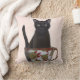 Black Cat in Teacup Throw Pillow