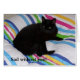 A photograph of a black cat in the bed. You can change or delete the text if you want.