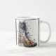 This charming coffee cup features a whimsical and artistic design with a black cat peeking out from the top of a black lace-up boot. The boot is adorned with a variety of colorful flowers and plants, including daisies, poppies, and other wildflowers, which appear to be growing out of and around the boot. The image creates a visually striking and imaginative scene, perfect for cat lovers and nature enthusiasts alike. The cup itself has a sleek, modern shape and is customizable, allowing you to personalize it with your favorite colors, fonts, and additional text or images. Whether you're enjoying your morning coffee or gifting it to a loved one, this unique coffee cup is sure to brighten anyone's day.