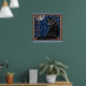 Digital Art | Black cat sitting in an open window at night gazing at the stars and moon.