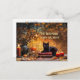 A black cat with mystical books and candles, in an autumn seasonal scene. The words "The bewitching season has begun" on the front but you can change that or delete it. A fun and magical Halloween postcard.