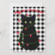 Black cat Meowy Christmas twinkle lights gingham Holiday Card
