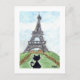Black cat Noir Chat Looking at Eiffel Tower Art Postcard