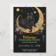 Black Cat on a Crescent Moon Black Halloween Invitation