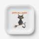 Black Cat on a Witch's Broom Happy Halloween Paper Plates