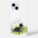 A lovely iPhone 15 barely there case picturing an idyllic black cat enjoying its life, lying on grass.