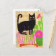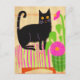 Black Cat on Pink Striped Seat Flowers Postcard
