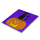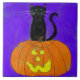 Black Cat on Pumpkin Abstract Halloween Art Ceramic Tile