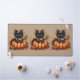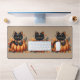 Black Cat on Pumpkin with Autumn Quilt Pattern Desk Mat