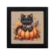 Black Cat on Pumpkin with Autumn Quilt Pattern Gift Box