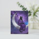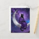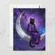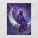 A gorgeous black cat in purple robes sitting on the silver crescent moon