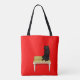 Black cat on the stool tote bag