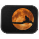 Black cat silhouetted against an orange full moon