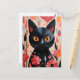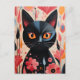 Black Cat Pink Flowers Postcard