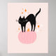 Black Cat Pink Halloween Poster