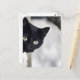 I wanted a postcard that looked like my deceased black cat Gary. This cat looks nothing like him but his little face is so sweet peaking around the corner. His whiskers are more visible when you see the card in person. The color and image quality were excellent. There were no stray marks.