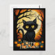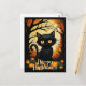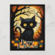 Black Cat Pumpkin Forest Happy Halloween Postcard