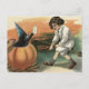 Black Cat Pumpkin Witch's Hat Broom Letter Postcard