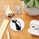 Keep your keys organized with this retro mid-century modern black cat keychain. The sleek silhouette and bright green eyes are featured in a durable design that adds a pop of 1960s nostalgia to your daily routine. It makes a thoughtful small gift or stocking stuffer for cat owners and fans of minimalist graphic art who enjoy unique and stylish accessories.