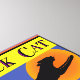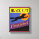Black Cat Flying School Retro Halloween Art. A magical black cat flies across a blue sky with an orange moon, original vintage Halloween art with an antique crate label design by AngelCityArt. Click Customize it to add your name or message, change background colors and create your own design.