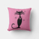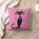 BLACK CAT RETRO THROW PINK PILLOW