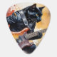 Add some humor to your guitar with this watercolor illustration of a black cat playing guitar. He’s even wearing his cool black leather jacket.