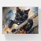Black Cat Rock Star Playing Acoustic Guitar Paperweight