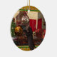 An adorable black cat round Christmas ornament! Ornament features a black cat playing with dangling decorations, a cozy Christmas home background, with glowing holiday lights. A wonderful decorative gift idea for both family and friends, and especially for someone that has a black cat or collects cat items. For more cat gift items, cards, and or other cat themed products please visit our store.