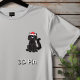 Cute, fluffy, black cat graphic with blue eyes, wearing a red/white Santa hat for Christmas.