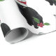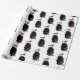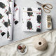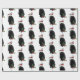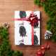 A black cat wearing a jaunty Santa hat holds a sprig of red and green holly on this fun holiday wrapping paper.