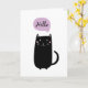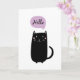 Greeting card featuring a cute, black cat with a purple speech bubble and the text "Hello". Simple, hand drawn style. Blank inside. Add your own text.