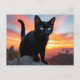 Black Cat Silhouette at Sunset Postcard