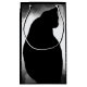 Backside image of black cat turning head to the side. Smoky hazy background.
