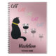 A fun notebook for school with an elegant black cat silhouette and black, gray and white tulips.