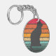 Black Cat Silhouette on Distressed Rainbow Keychain