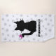 Enjoy this cute beach towel featuring a whimsical black kitty cat silhouette with a pink butterfly on its tail and the words "Purrfect" over a light gray paw printed background Personalize it, change the white background color to your favorite!