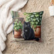 Black Cat Sitting by Ivy Plants Cat Lover Throw Pillow