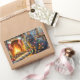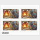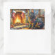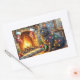 Black Cat Sitting Fireplace with Christmas Lights Rectangular Sticker