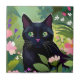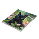Black cat sitting in a field of flowers ceramic tile
